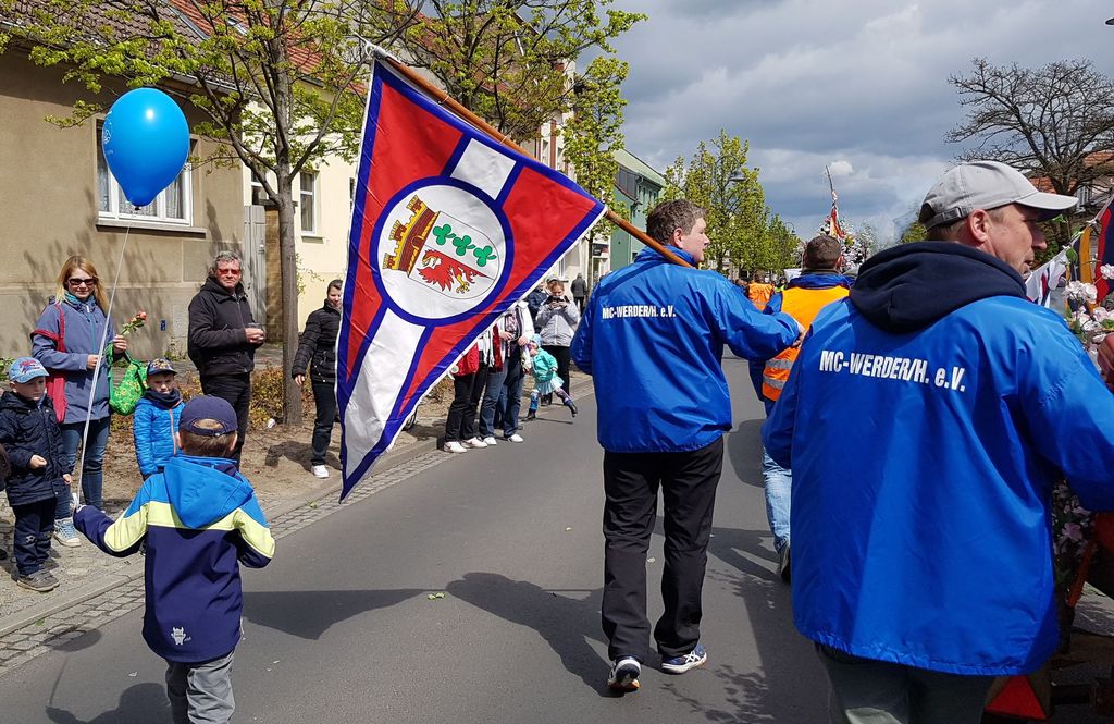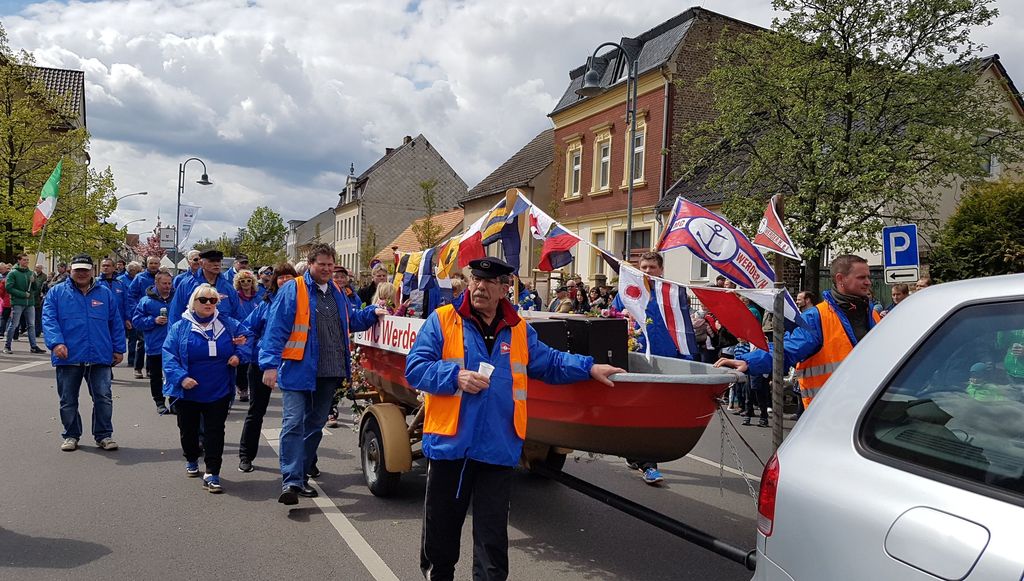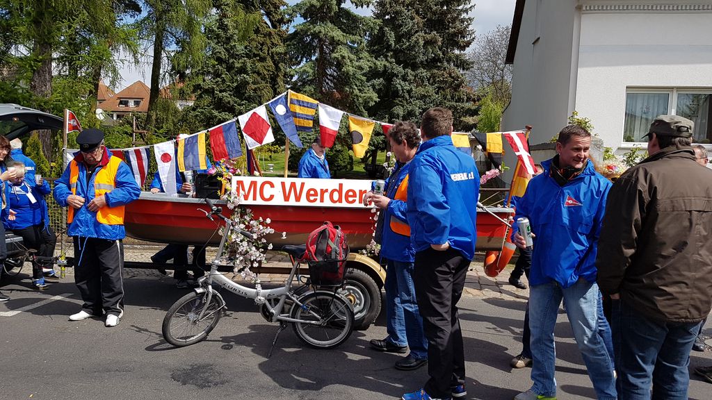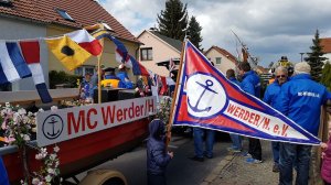 Am Festumzug zur Eröffnung des 138. Werderaner Blütenfestes nahm der MC Werder/Havel e.V. mit dem geschmückten Hafenkahn teil.