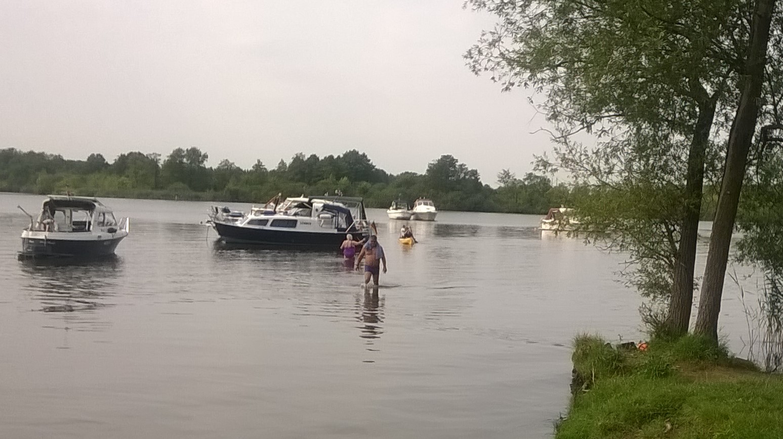 will der Erste sein. Die Motorboote fallen nach Steuerbord zum kleinen Zernsee ab und wir in die Wublitz ein.