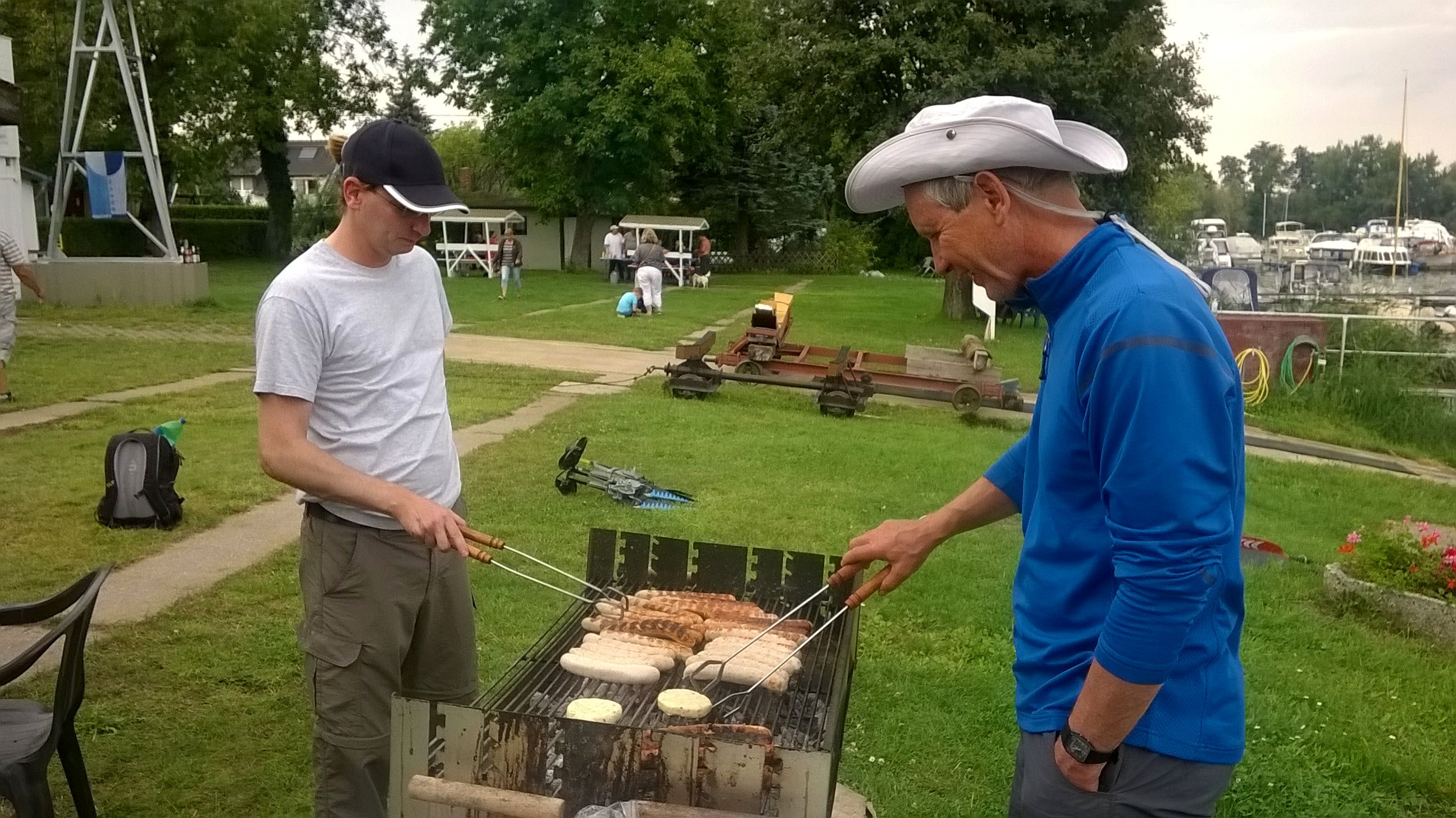 Auch die Motorkraft ist nicht faul. Sie kämpft sich wie wir nach Marquardt, wird mit großem "Hallo" willkommen denn Sie bringt Proviant und Nachschub. Die Mannschaft wird mit Hilfe der Kleinboote ausgeschifft und die Ladung an Land gebracht. Ein Blick dann in die zahlreiche Runde. Alle wohlauf und gesund. Keine Verluste. Die feierliche Landnahme kann beginnen.
