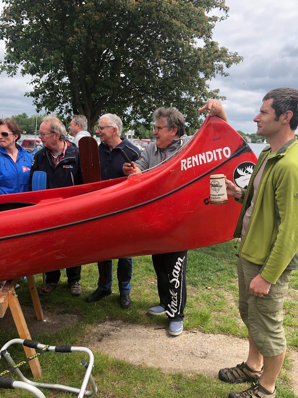 Den Höhepunkt bildete die Taufe des neu erworbenen Clubbootes auf den Namen "MC QUADRAT". Das Boot wurde sofort zu Wasser gelassen und mit zwei kurzen Fahrten erfolgreich getestet.