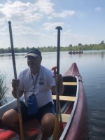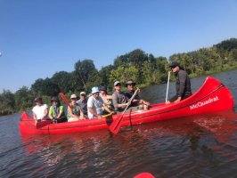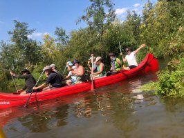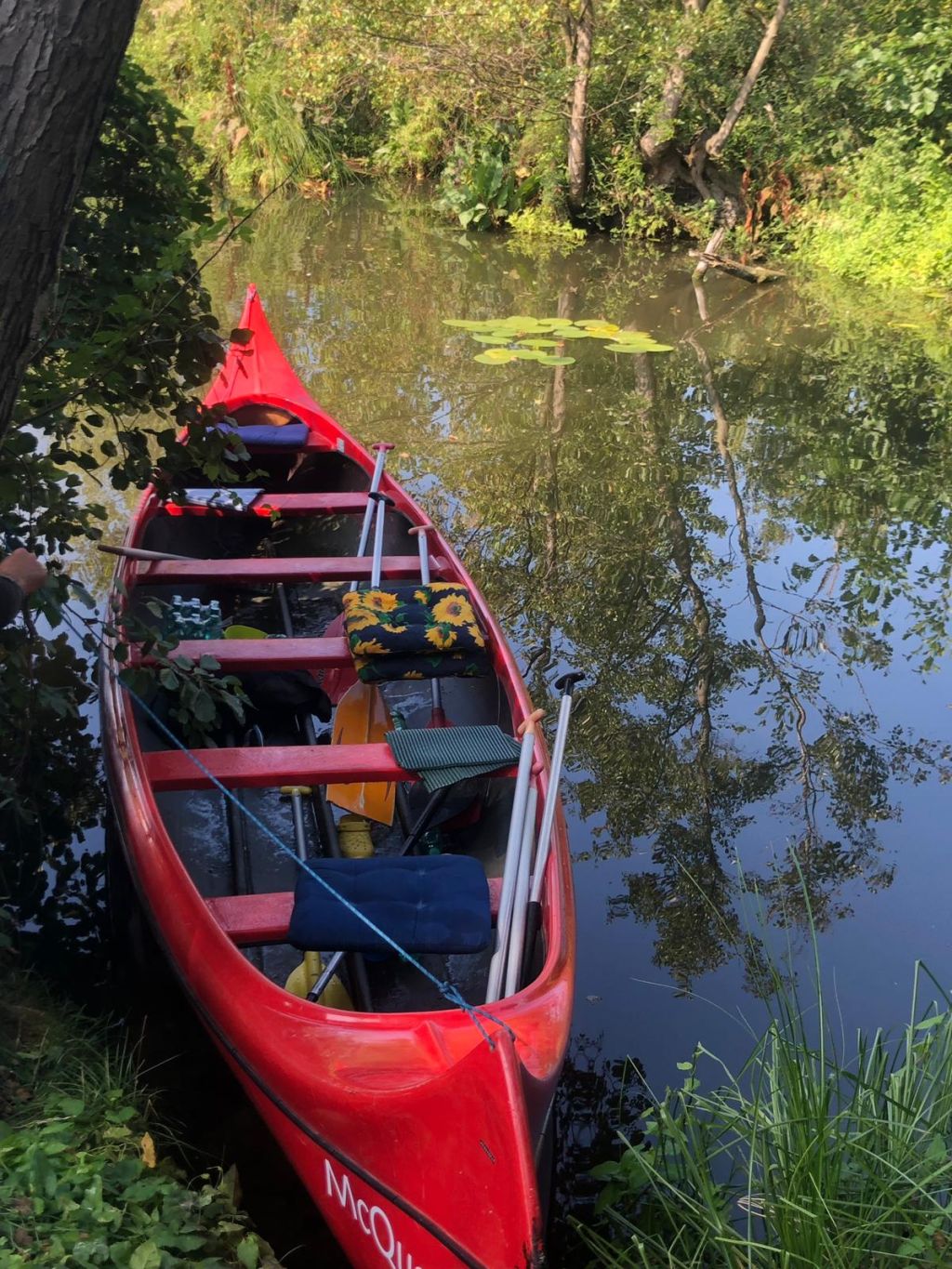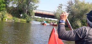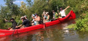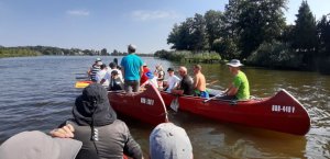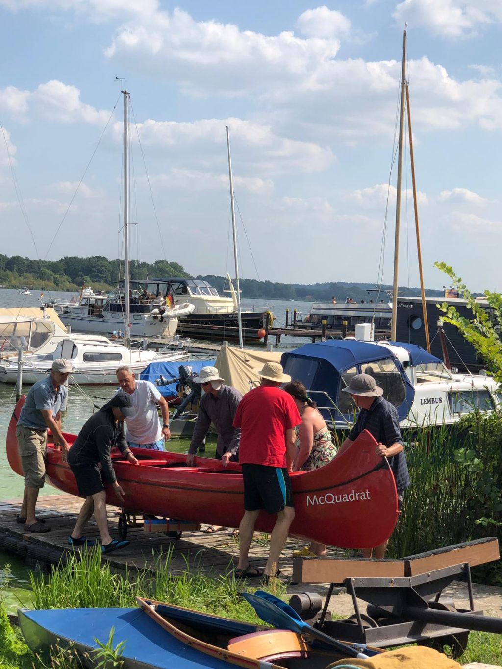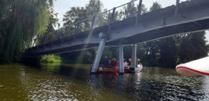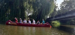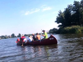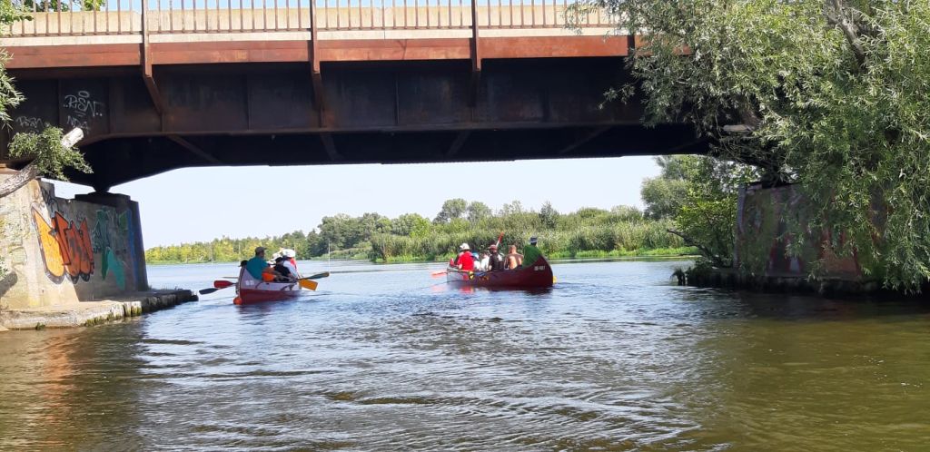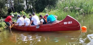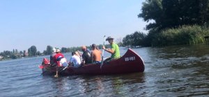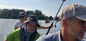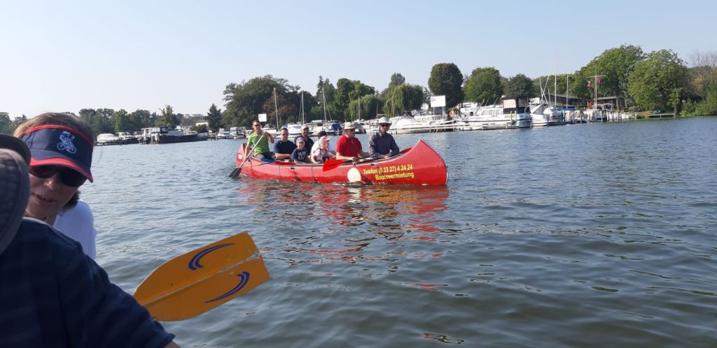 Die Testmannschaften steigen mit den Antrieben in die Boote. Zunächst sind allerdings einige motorische Bewegungs- und Koordinationsprobleme zu überwinden. Dann geht es los auf die Teststrecke. Auch wenn wir unsere Beiträge zur CO2-Minderung an einem Samstag leisten, sind wir uns doch gewiss, dass sowohl Greta als auch FfF-Aktive uns freundlich interessiert aus der Ferne begleiten. Durch die wunderschöne Wublitz, vorbei an frischer Natur und bei meist absoluter Stille führt die Testfahrt. Einzig und allein die Testfahrer geben ihr CO2 von sich.