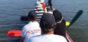 Knapp 30 Probanden haben sich eingefunden, die gerne an der Versuchstestfahrt nachhaltiger Bootsantrieb teilnehmen wollen.