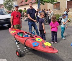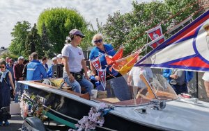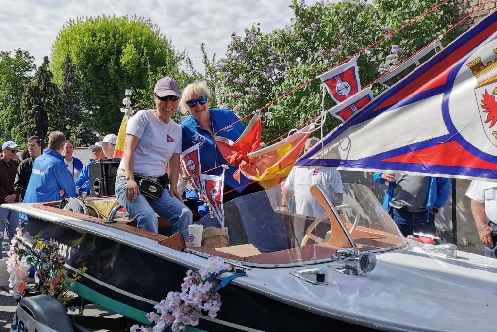 Unser geschmücktes Motorboot schaffte es sogar in die Berichterstattung des RBB.