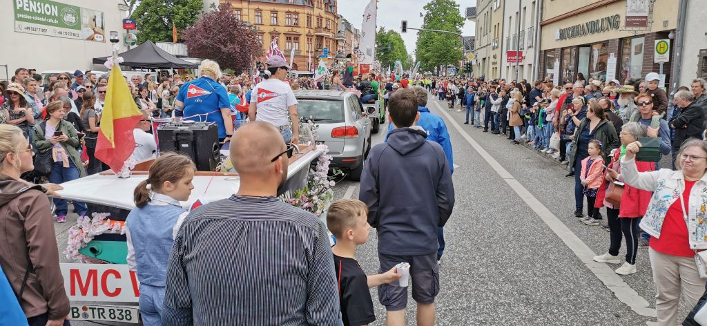 Der MC war mit 40 Mitgliedern gut vertreten. Christiane, Tanja und auch die Kinder verteilten "Kamelle". Das kam gut an.