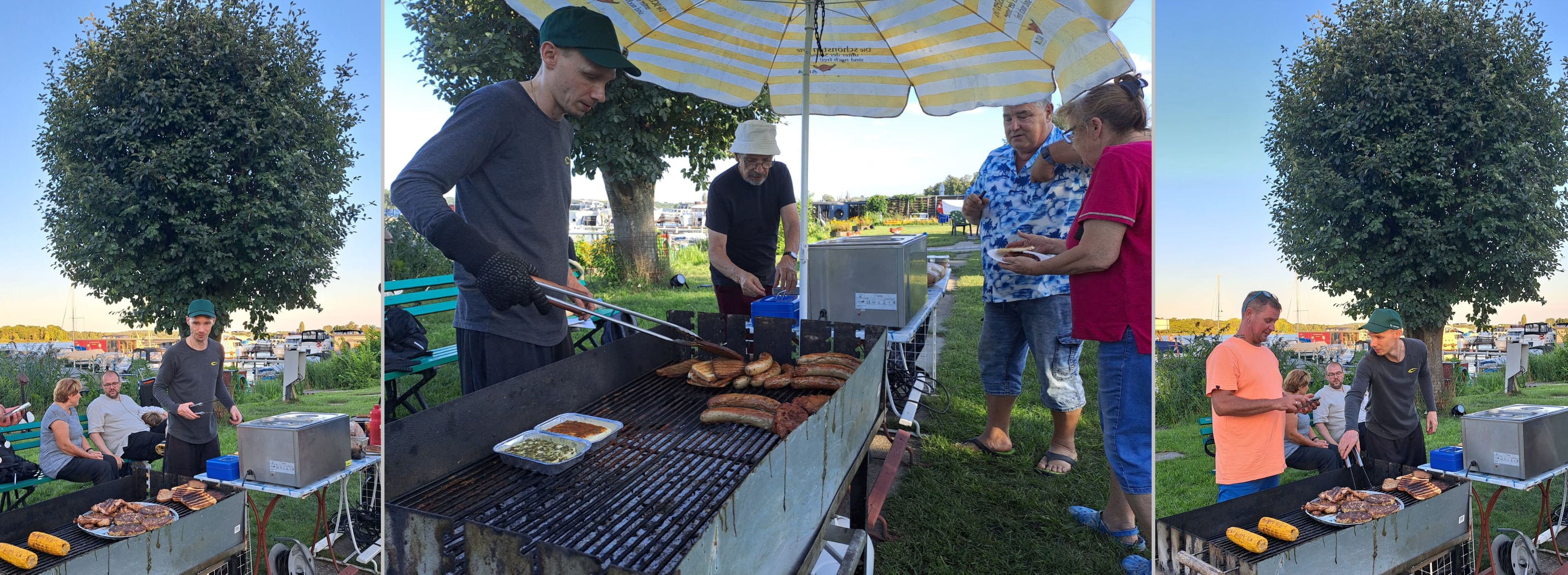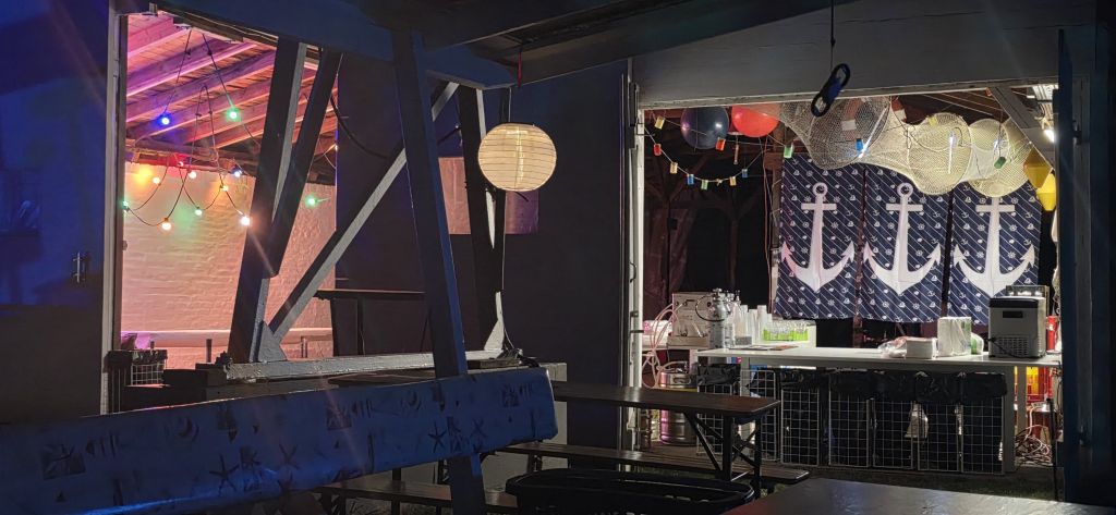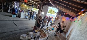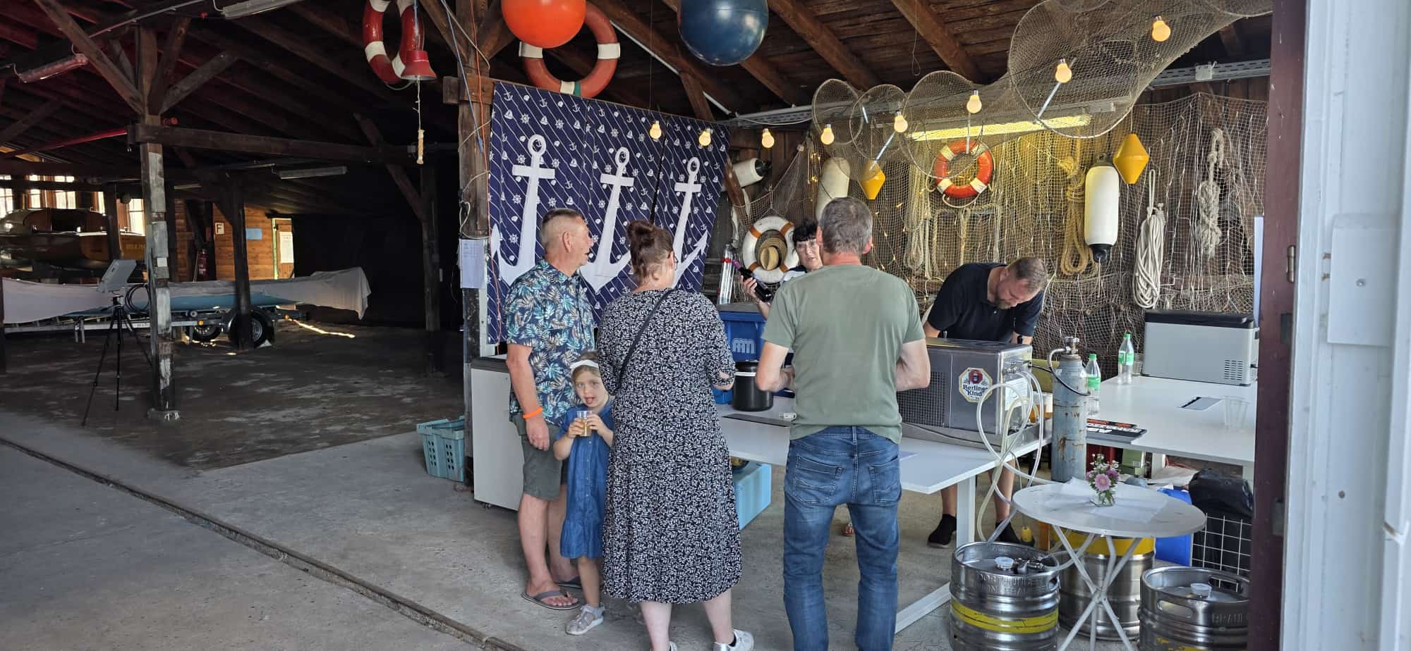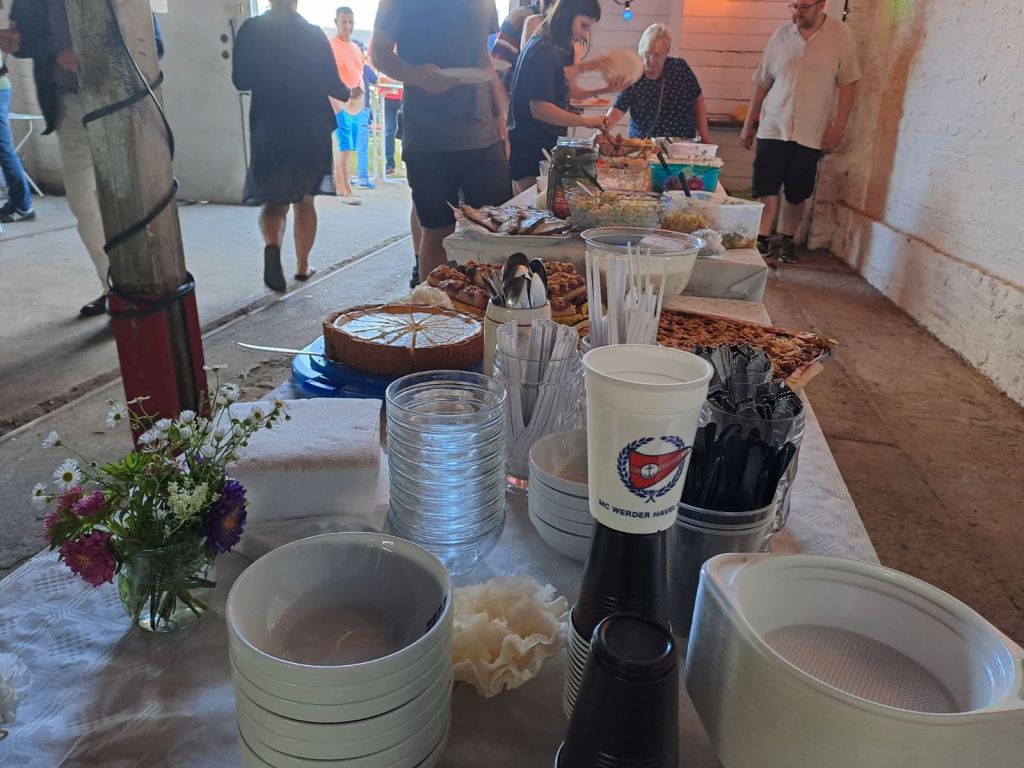 Die Bar und das Buffet wurden in Halle 1 aufgebaut. Ein Zelt und die, vor der Halle zusammengestellten Sitzgruppen, gaben den nötigen Schatten. Diese Anordnung konzentriert das Geschehen und wurde von allen als super Idee gewürdigt.