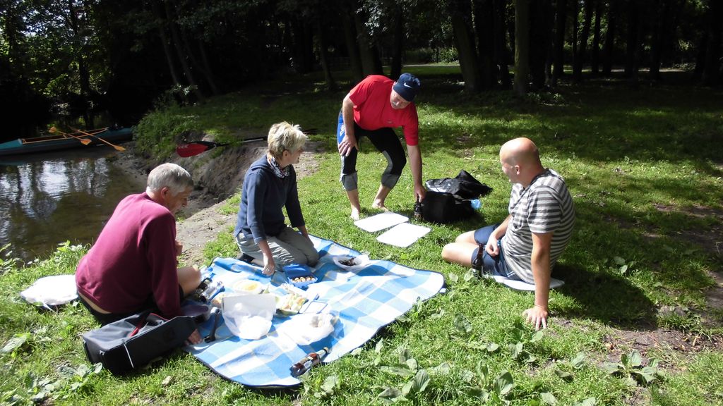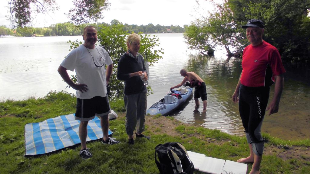 Am nord-westlichen Ufer des Sees angekommen, wurden die Picknick-Überraschungen, die wie bei den vergangenen Paddeltouren reichlich bemessen waren, ausgepackt und verzehrt. Nach einem gemütlichen Beisammensein am See traten wir nach einigen Stunden gemeinsam die Heimreise an. Ein Boot bediente sich dabei teilweise der Segelunterstützung.