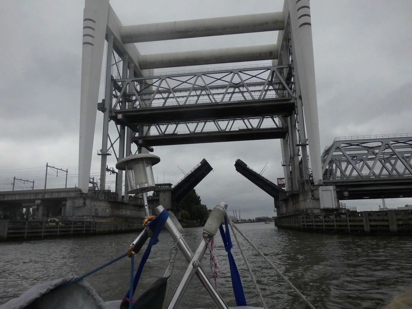 Mitte Juli hatten wir unseren SW-lichsten Punkt erreicht nach 1010 km im Grevelingenmeer südlich von Rotterdam, mit glasklarem Salzwasser, nach Gang über den Brouwersdamm konnten wir an einem breiten Sandstrand in der Nordsee baden. Der Weg dorthin verlief unter anderem über den Mittellandkanal, Dortmund-Ems-Kanal, Rhein, Nijmegen (Fahrradfreundlichste Stadt der Niederlanden, mit Fahrradschnellwegen, die Vorfahrt vor Autostrassen haben), Maas, Volkerak. Danach Amsterdam, Ijsselmeer, Friesland, Groningen, über den Dollard nach Emden, mit der Flut die Ems hinauf mit Flutstrom bis 3,3 kts.