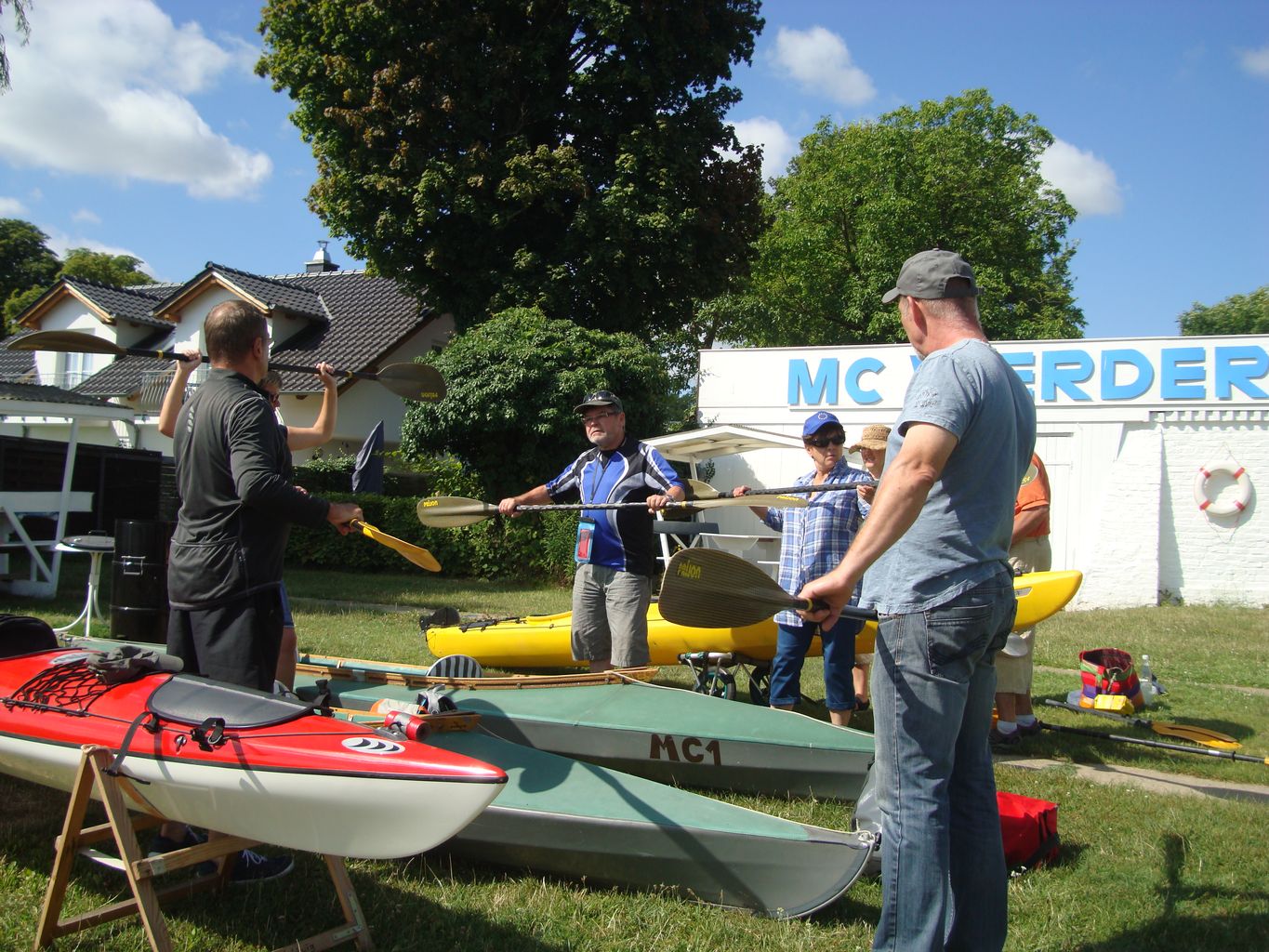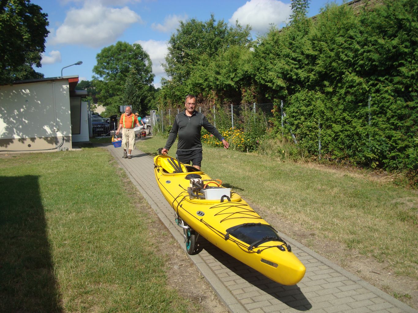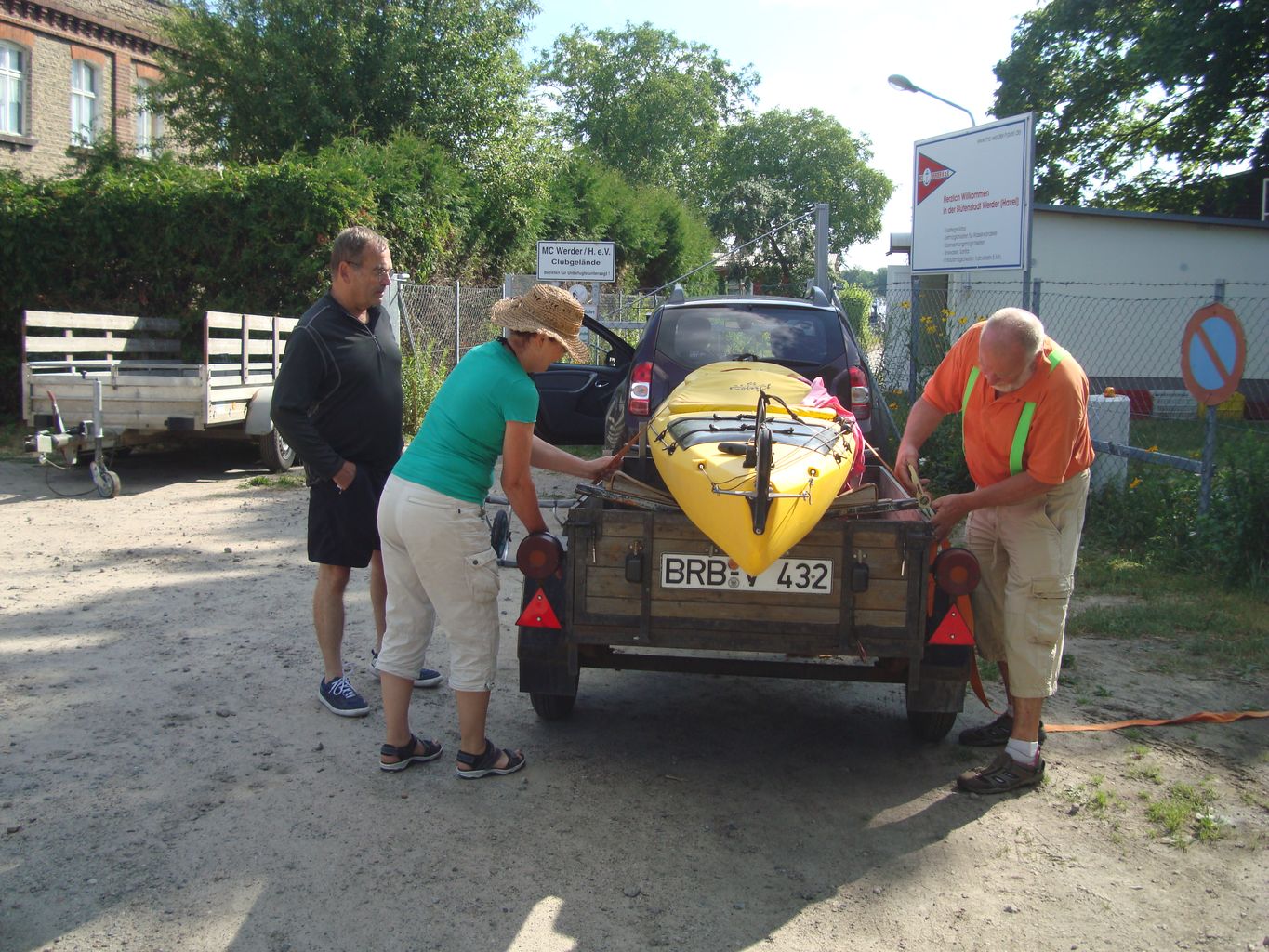 Am 15. Juli 2018 sind 4 Ehepaare - darunter 1 Clubmitglied - mit 4 Zweierkajaks in Richtung Ketzin gestartet. Zwei Paare saßen das erste Mal in einem Kajak, so dass ihnen vor dem Start die Technik erläutert wurde. Am Ende des Tages hat keiner vermutet, dass dies der erste Versuch war.