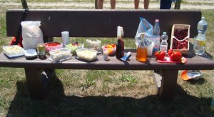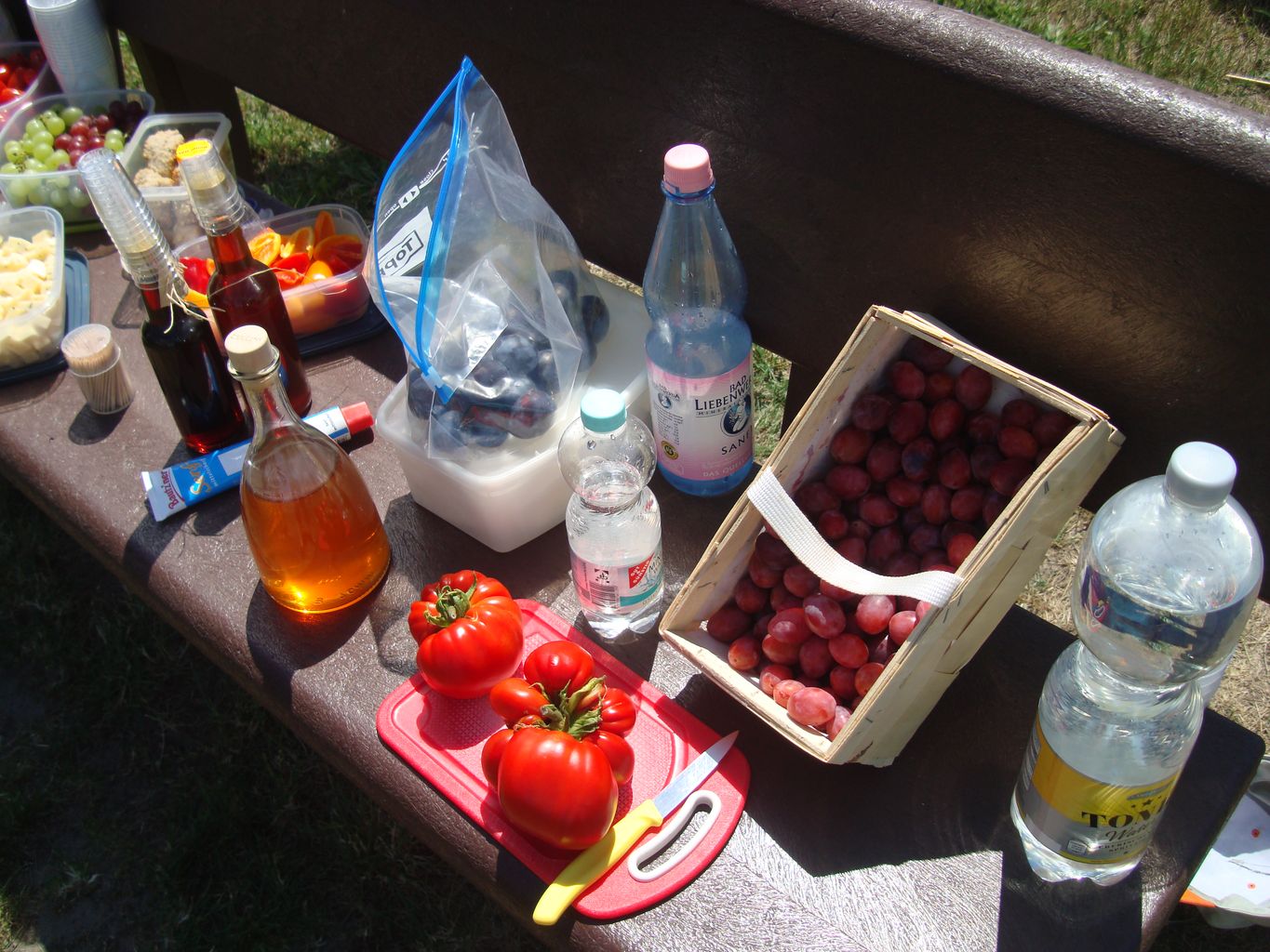 Bei herrlichem Sonnenschein, frischem Wind und sommerlichen Temperaturen gab es am Strand von Phöben - unserem Etappenziel - zur Stärkung ein abwechslungsreiches Picknick.