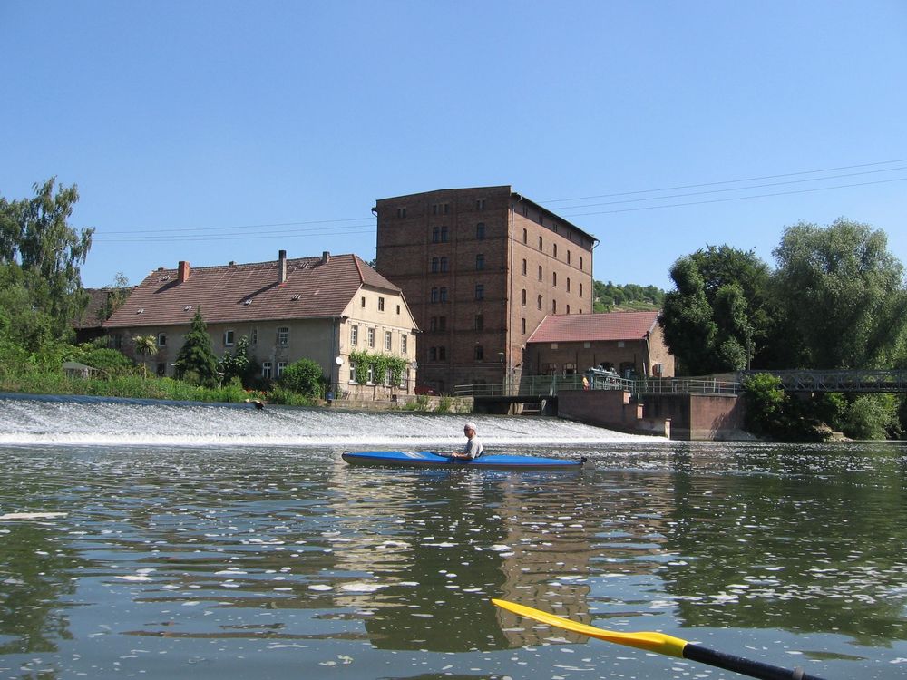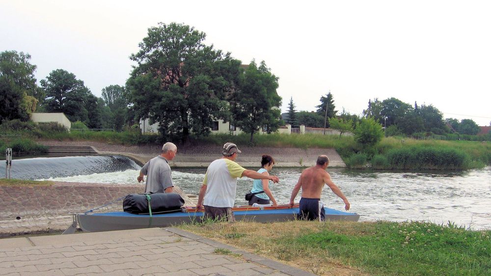 Gemeinsam mit Freunden des Wassersports aus Thüringen und Mecklenburg trafen wir uns an der Schleuse Ritteburg (ca. 60 Flußkilometer von der Mündung der Unstrut in die Saale bei Blütengrund/Naumburg). Gaststätte und Zeltplatz sind ein beliebter Ausgangspunkt für Wasser und Radwanderungen.
