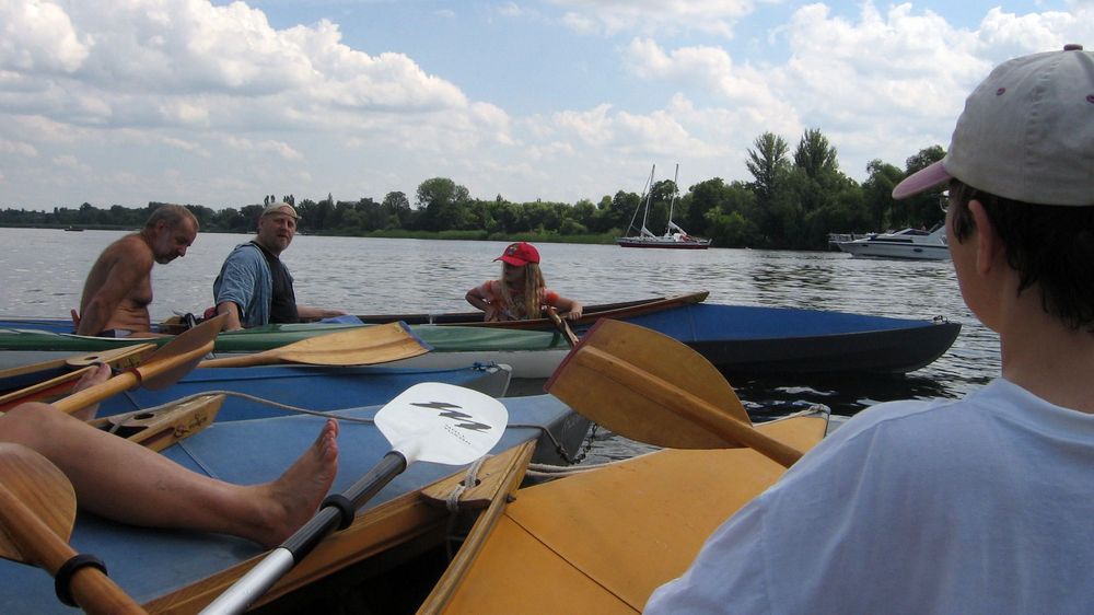 Am Sonnabend kamen noch zwei Zweier dazu und es ging durch die Eisenbahnbrücke auf den Großen Zernsee. Durch die Wublitz, den Kanal, fast bis Ketzin und auf der Havel zurück nach Werder. Eine schöne Strecke aber erst kurz vor der Autobahnbrücke konnten wir linker Hand eine Schänke erspähen. Auf dieser Streckt sollte man ausreichend Proviant an Bord nehmen.